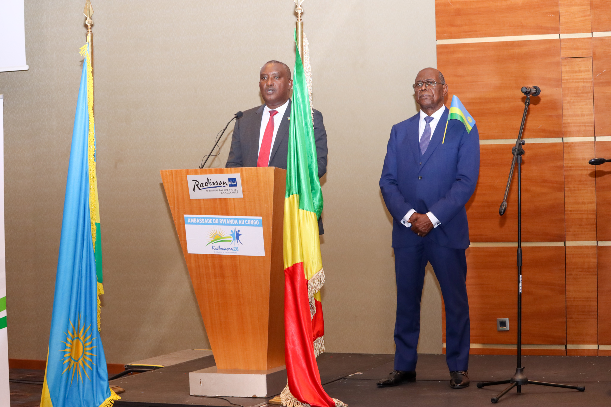 S’adressant aux invités à la cérémonie tenue à l’Hôtel Radisson, l’Ambassadeur du Rwanda en République du Congo , S.E.M Théoneste Mutsindashyaka, a affirmé qu’il reste beaucoup à faire pour la transformation du pays en relevant « que la vraie libération du pays ne peut se faire que dans le cadre de la coopération tant bilatérale que multilatérale »